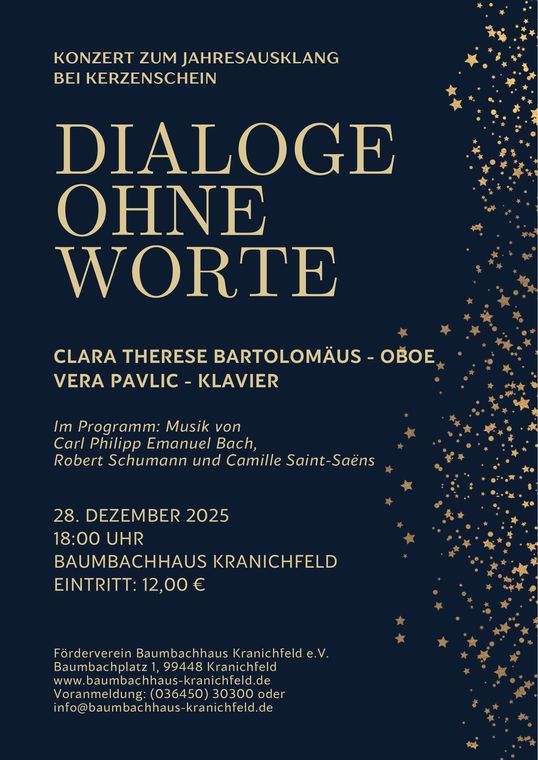 Wir bitten um Voranmeldung (036450) 30300 oder info@baumbachhaus-kranichfeld.de